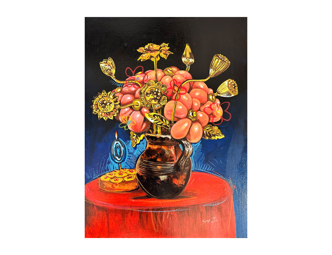Happy Presence Day, 2025. Acrylic, pastel and Varnish on Canvas 18”x 24”x”in $880 (Black framed)